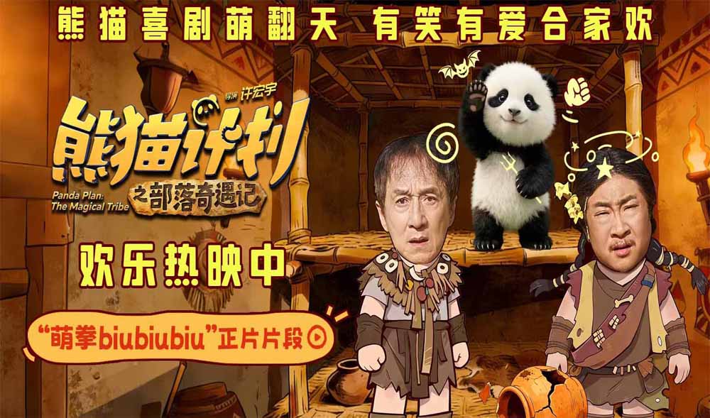 电影《熊猫计划之部落奇遇记》由许宏宇执导,胡胡、成龙、马丽、乔杉、于洋领衔主演,王影璐、张子栋特邀主演,王成思、柯达、宋木子、冯满、王星主演,潘斌龙、于荣光、胡笑源友情客串,将带领观众开启神秘部落冒险,共赴一场有笑有爱的合家欢治愈之旅。影片将于春节上映,熊猫陪你过大年!